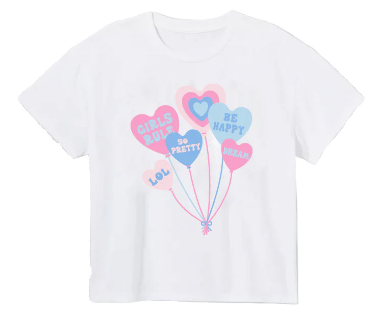 Azarhia Girls Rule Balloon Hearts Screen Print White Boxy Tee