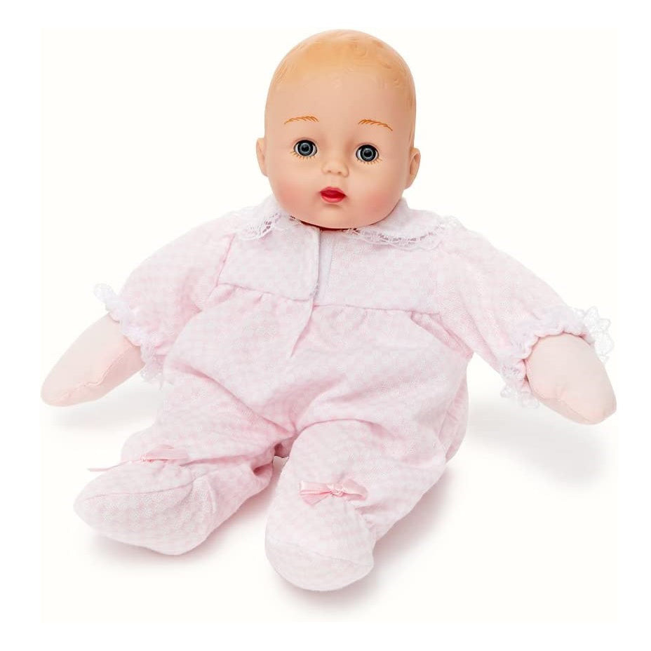 Introducing the Pink Check Huggums Light Skin Tone doll from Madame Alexander. This charming doll, designed with a pink checkered outfit, is perfect for fostering imaginative play and teaching kindness and compassion. Created with the highest quality and attention to detail, it offers an enduring playtime companion for your child. The doll stays true to Madame Alexander's vision of producing dolls that not only inspire and comfort but also cultivate enduring relationships. A perfect gift to pass on from generation to generation.