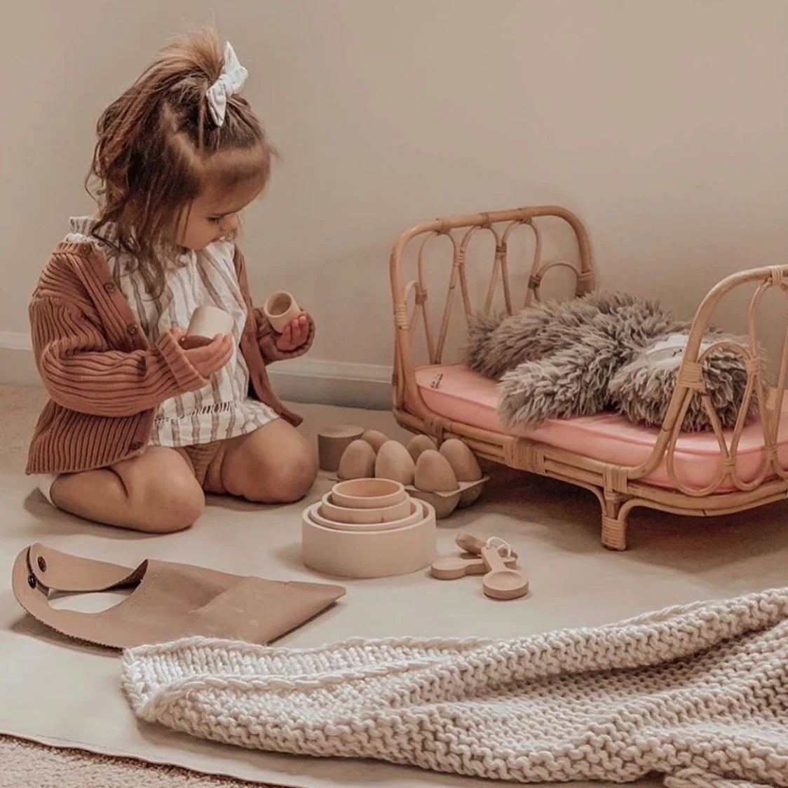 Tuck me in! Poppie’s fashionable rattan daybed will provide the basis for endless play. Children love to play mummy or daddy, placing their soft toys under blankets and telling them made up stories.