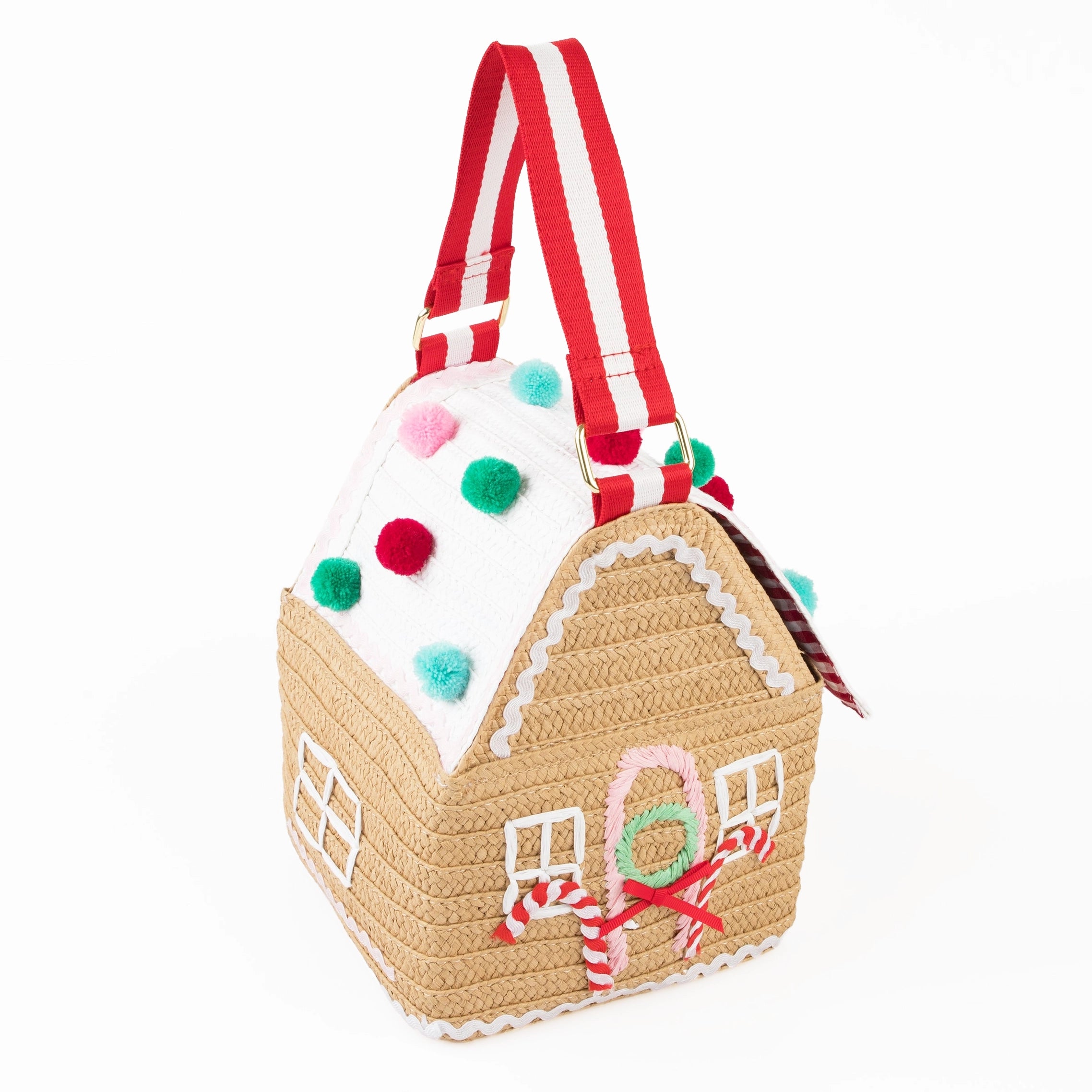 - The bag is crafted from woven paper - brown for the house and white for the roof
