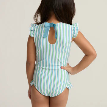 Tamarin Stripe Ruffle Cap Sleeve One Piece