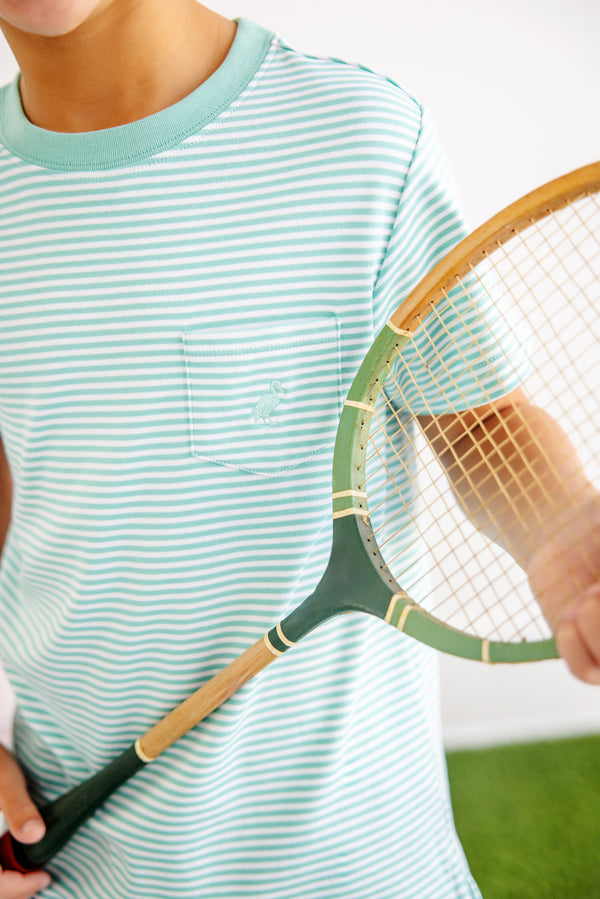 The Beaufort Bonnet Company Carter Crewneck, Turks Teal Stripe/Turks Teal Stork