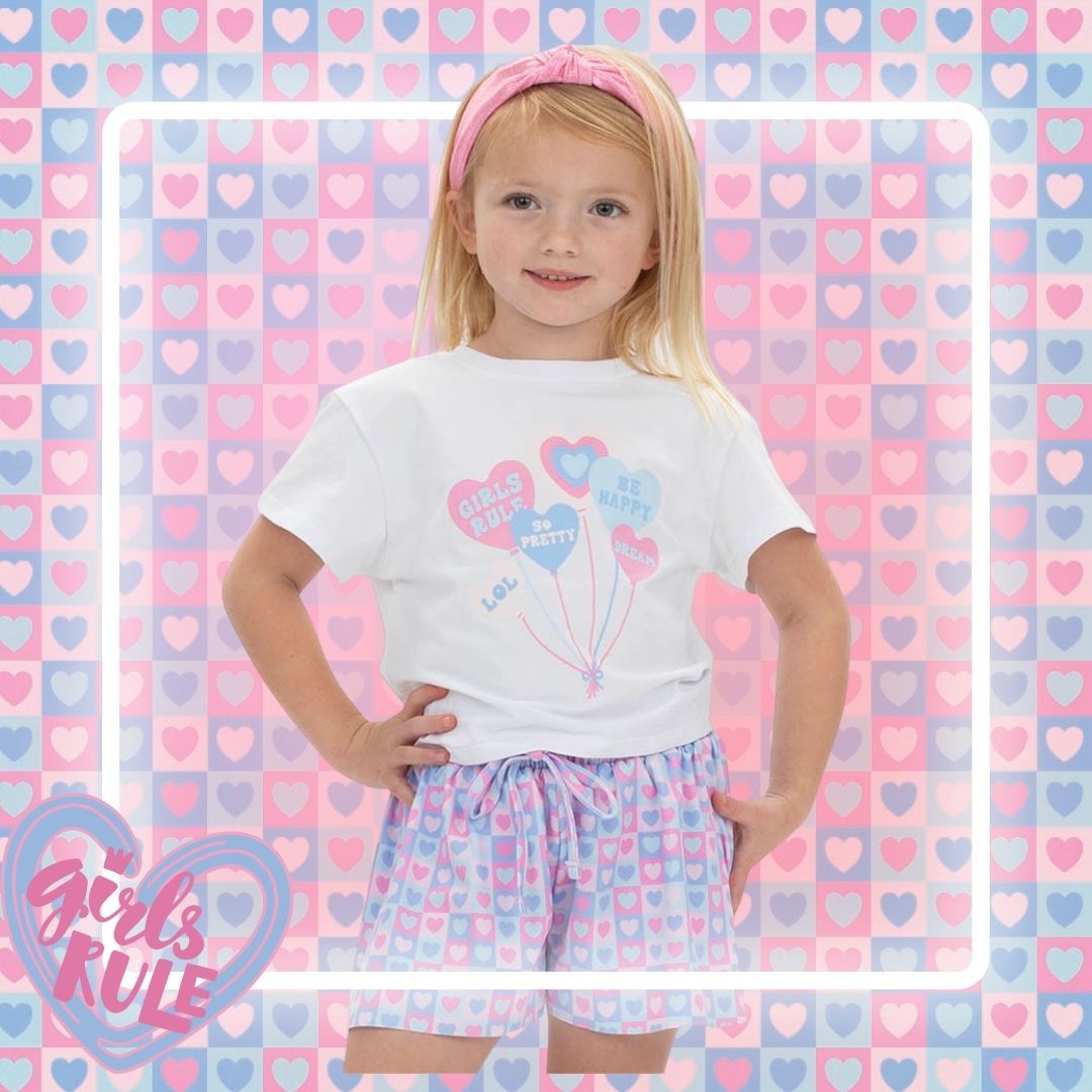 Azarhia Girls Rule Balloon Hearts Screen Print White Boxy Tee