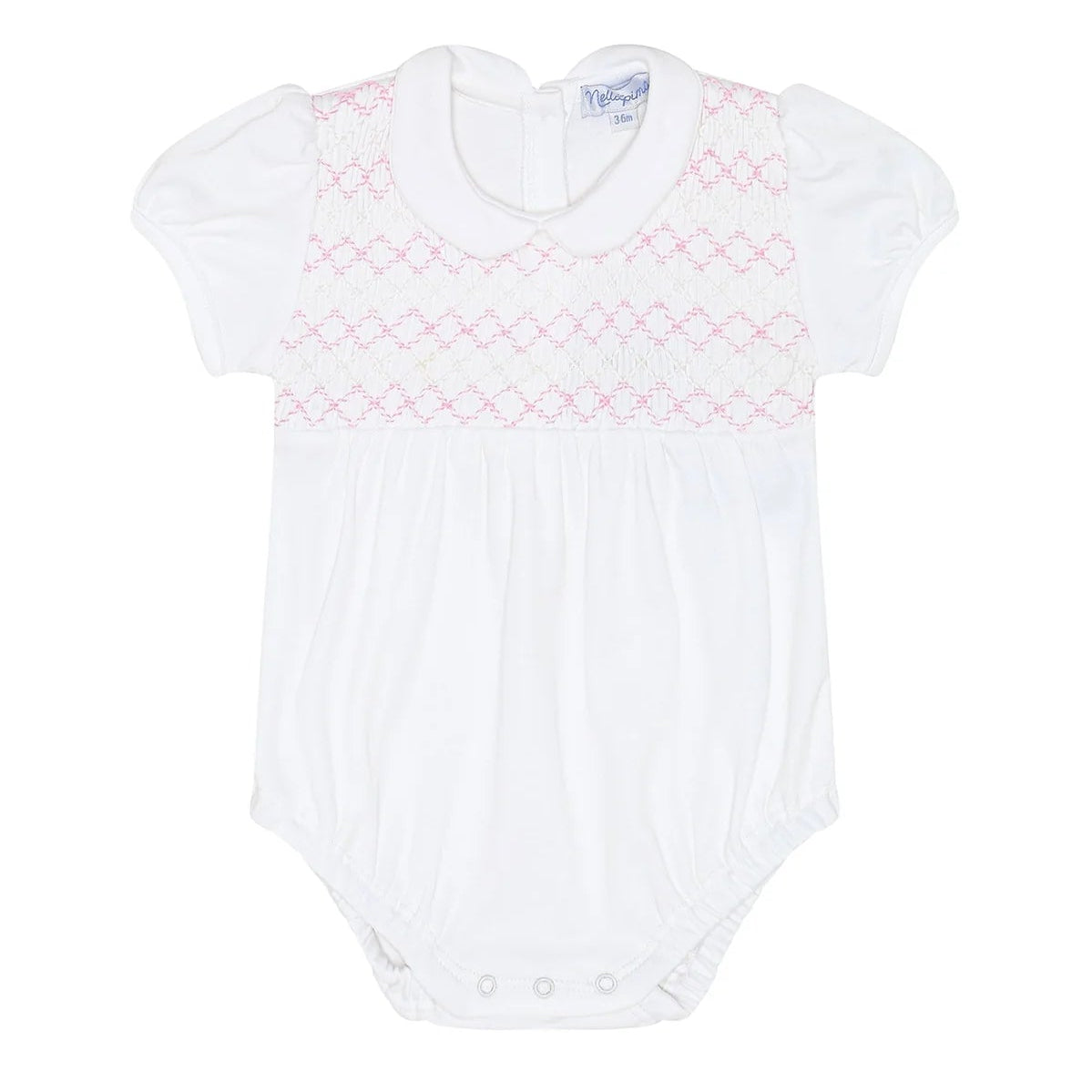 Nellapima Girl's Signature Smocked Bubble, White/Pink
