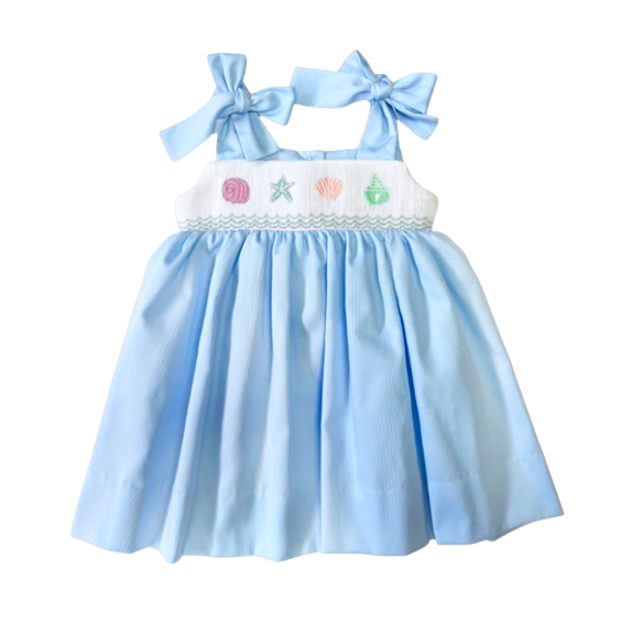 Julia Dress - Seashells Lulu Bebe Sale! from $74.00 /per Size 3T 4T 5 6 6X Produc variants 3T 4T 5 6 6X Qty. Add to Cart Couldn't load pickup availability Refresh lulu Bebe Julia Smocked Dress, Seashells