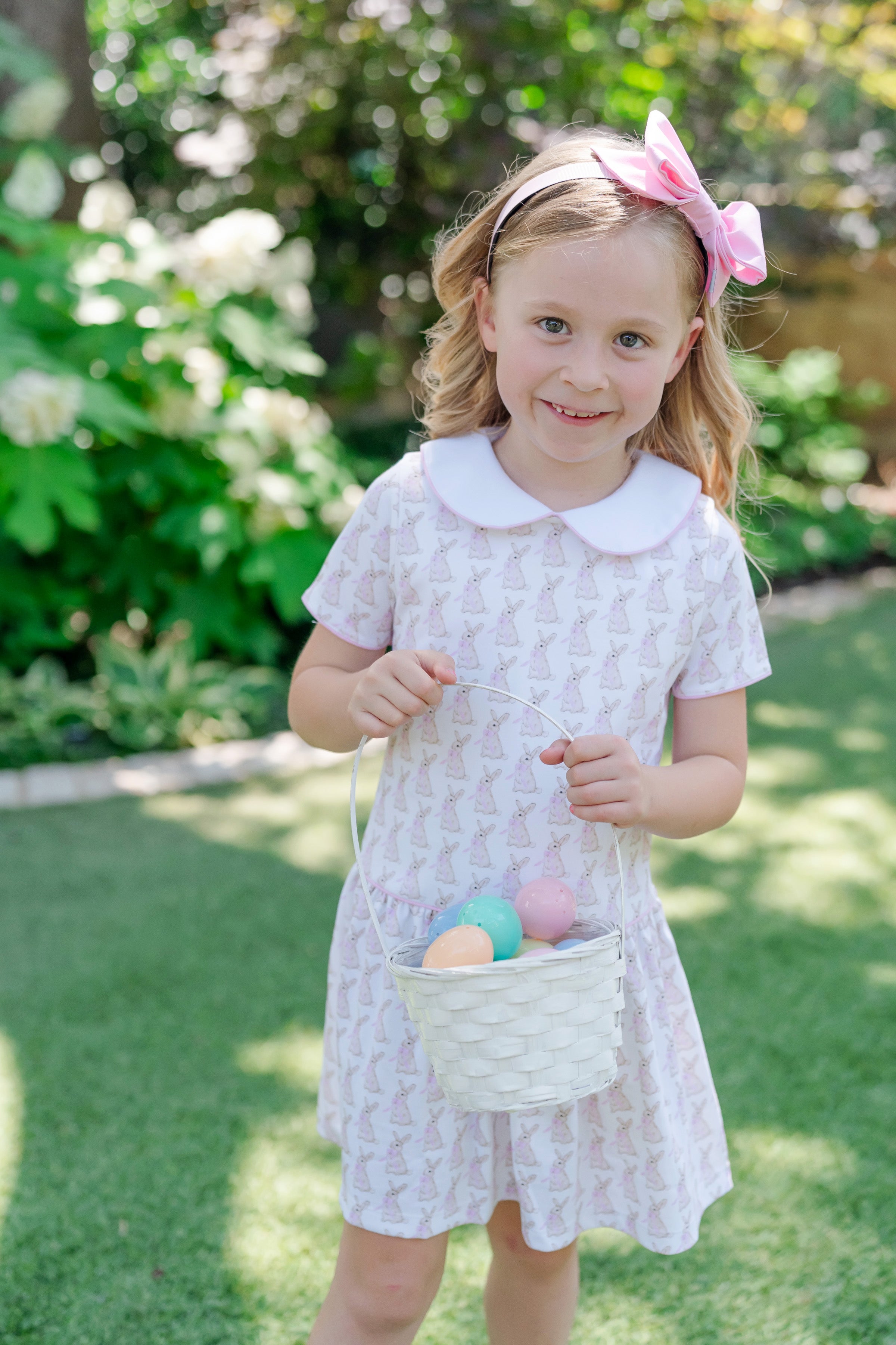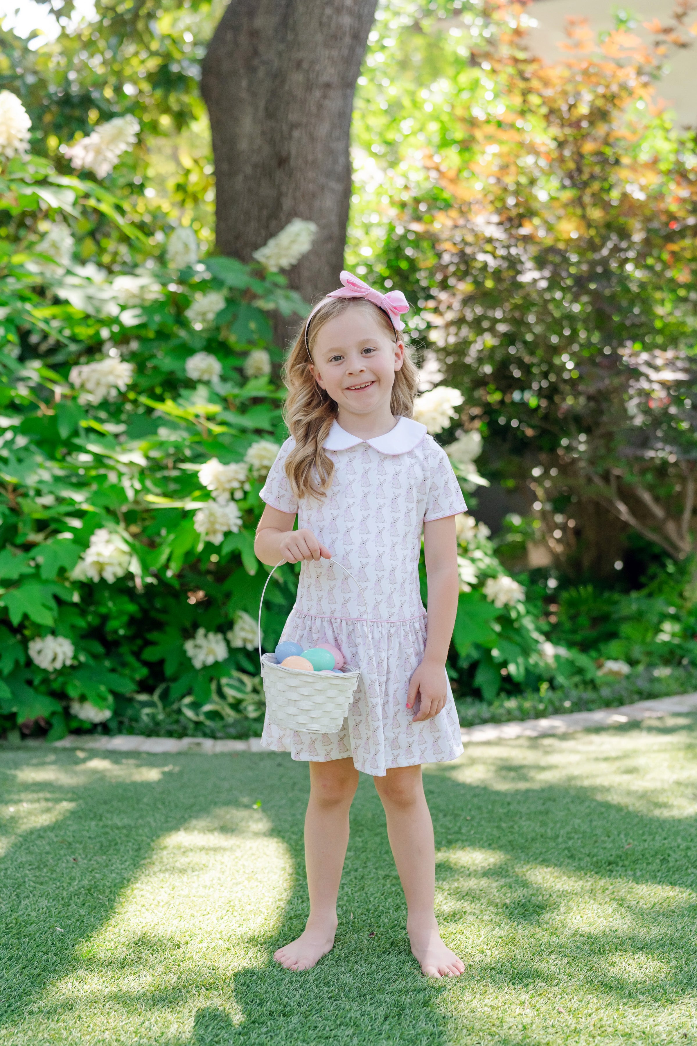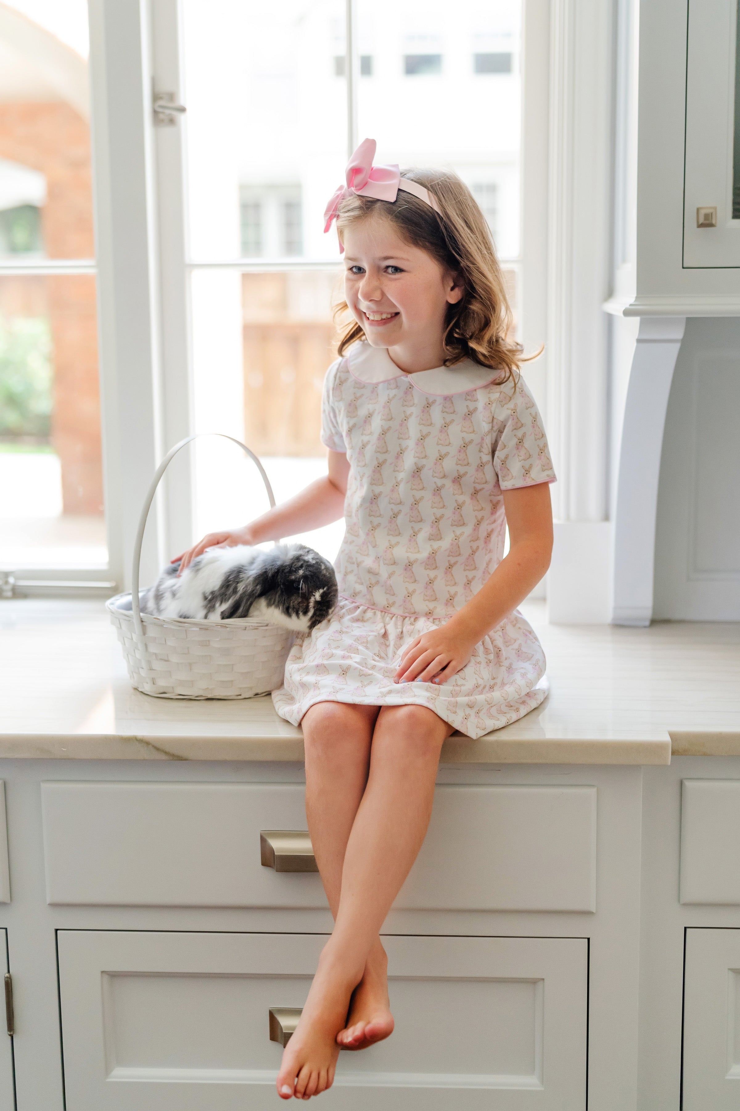 Lila and Hayes Libby Dress, Easter Bunnies Pink