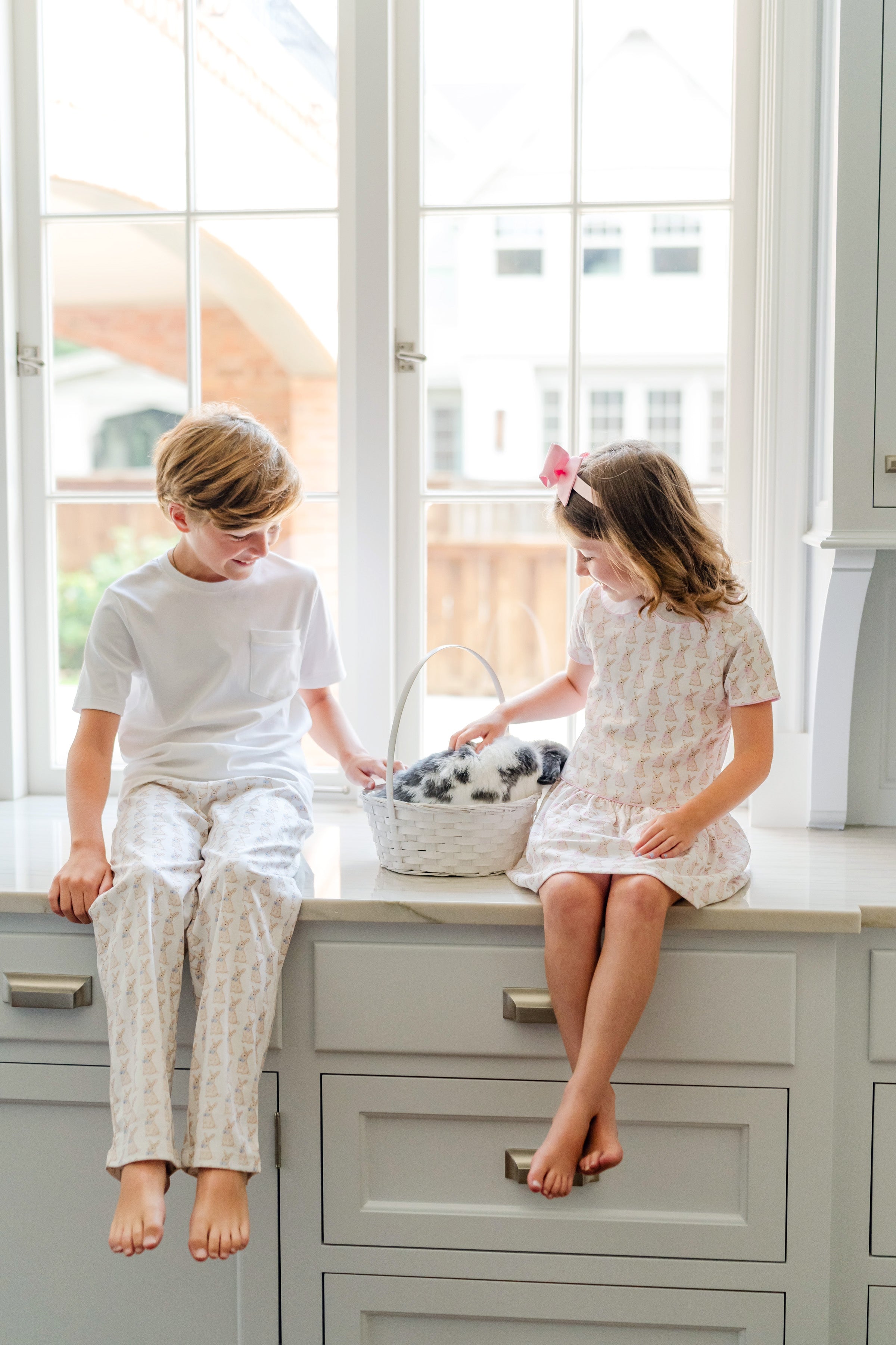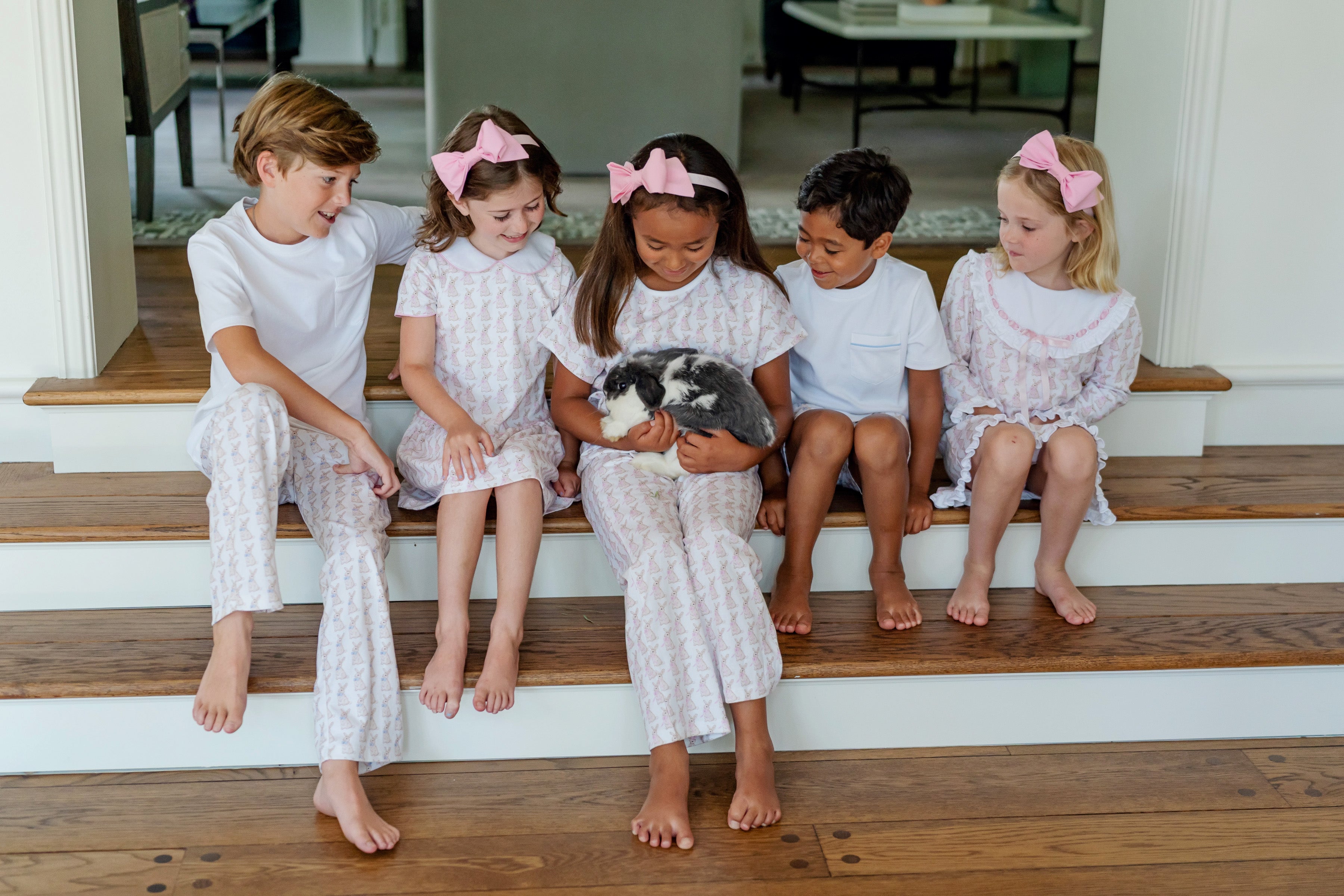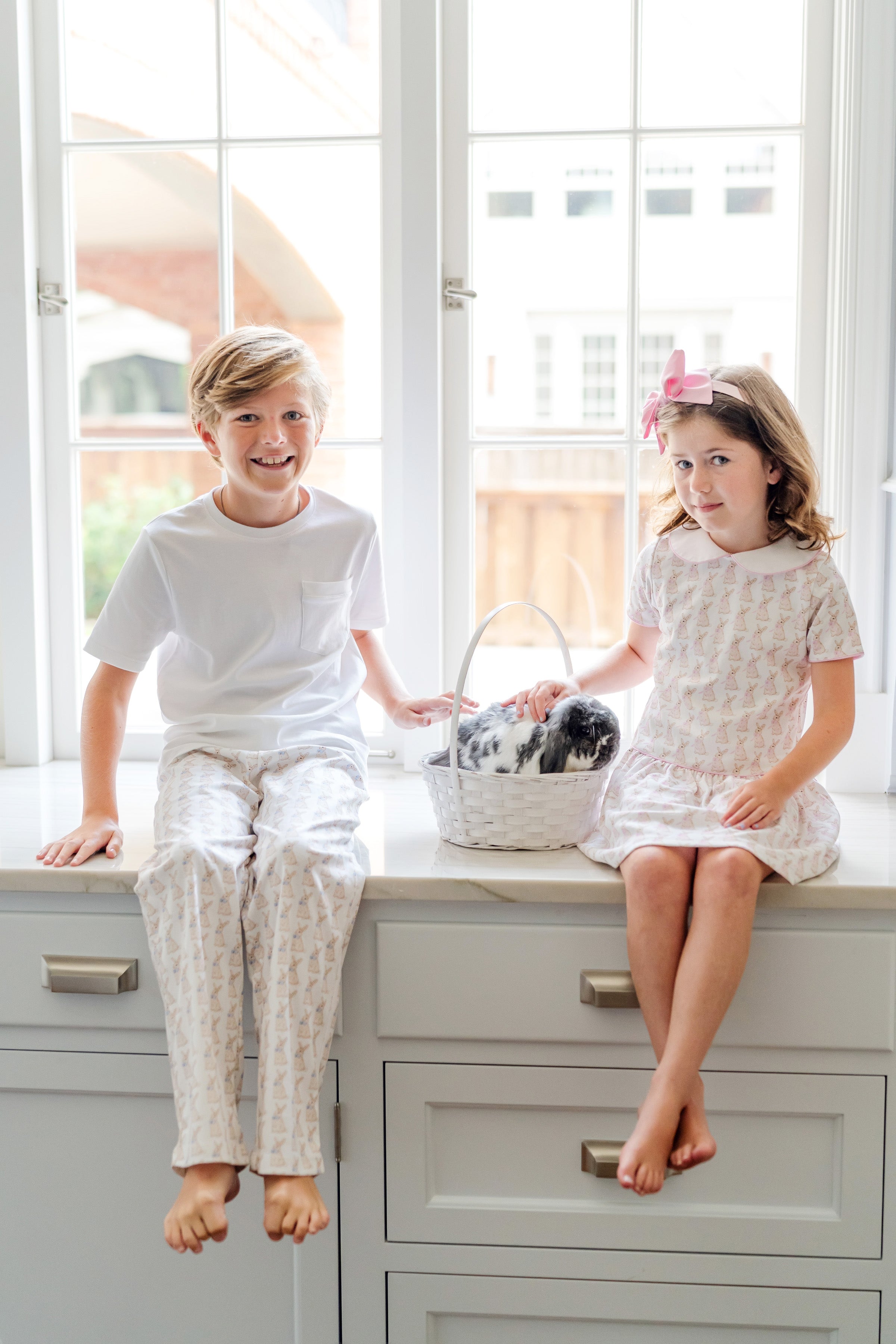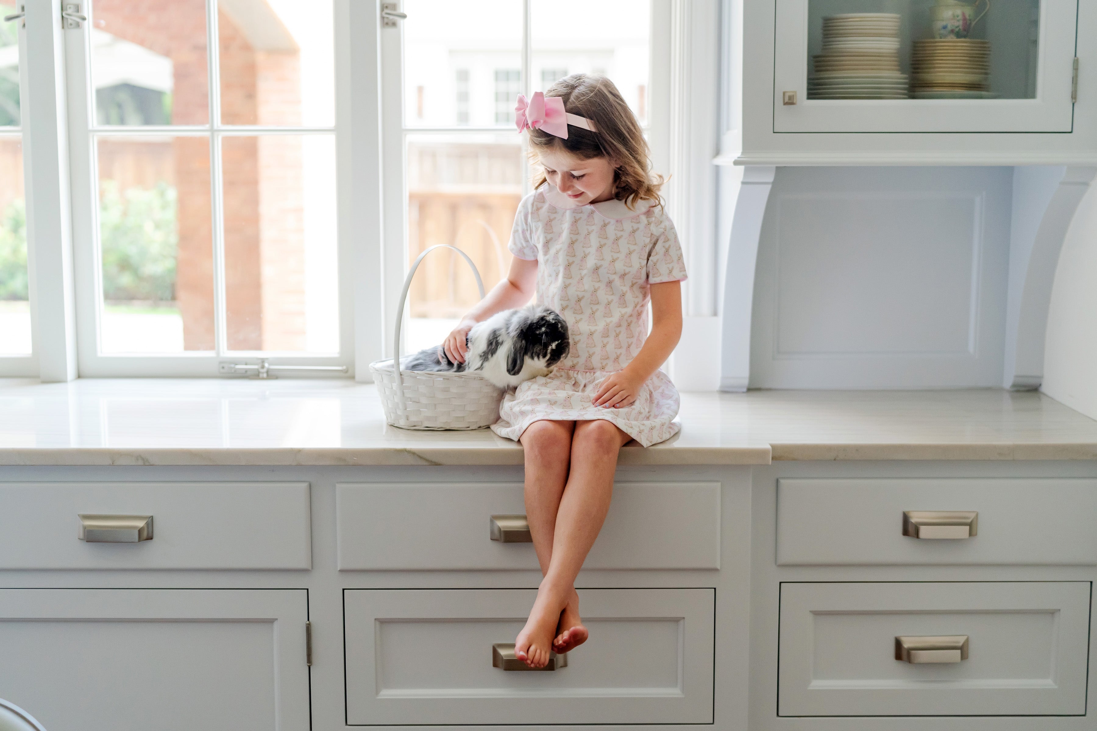 Lila and Hayes Libby Dress, Easter Bunnies Pink