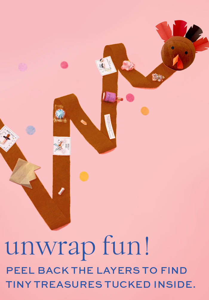 Unwind colorful layers of crepe paper ribbon to reveal many fun treasures inside this festival ball! Surprises include vintage inspired toy, crystal, temporary tattoo, sweet, crown, game and more! Surprise Balls make a great gift, unwind for a fun party game, or an excellent party favor. Create fun memories together!