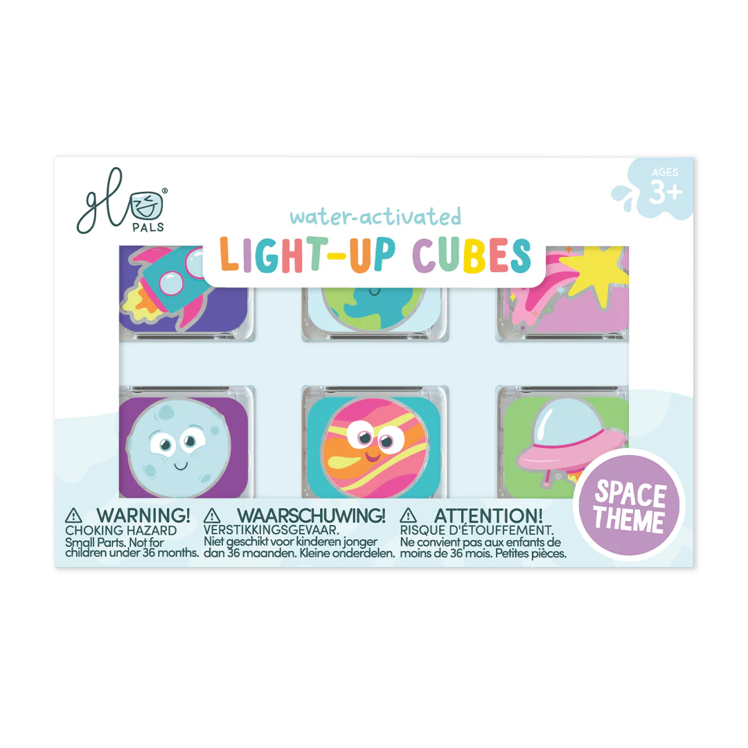 Each Light-Up Cubes Pack comes with 6 unique, themed designs. Just drop our Cubes into water and watch them automatically light-up and glow. These are perfect for all things sensory play!