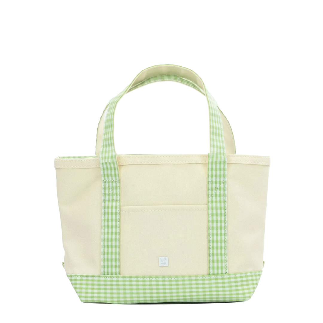 TRVL Design Mini Coated Canvas Natural Tote, Gingham Leaf Trim