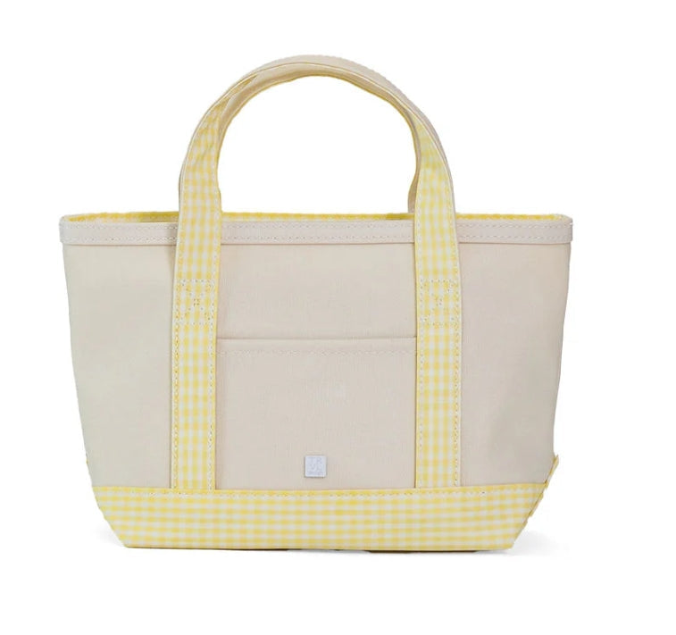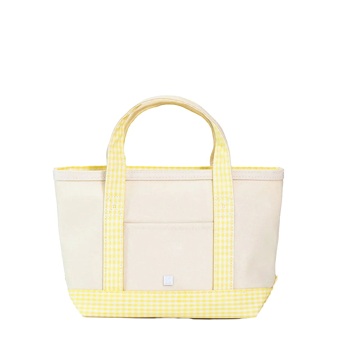 TRVL Design Mini Coated Canvas Natural Tote, Gingham Buttercup Trim