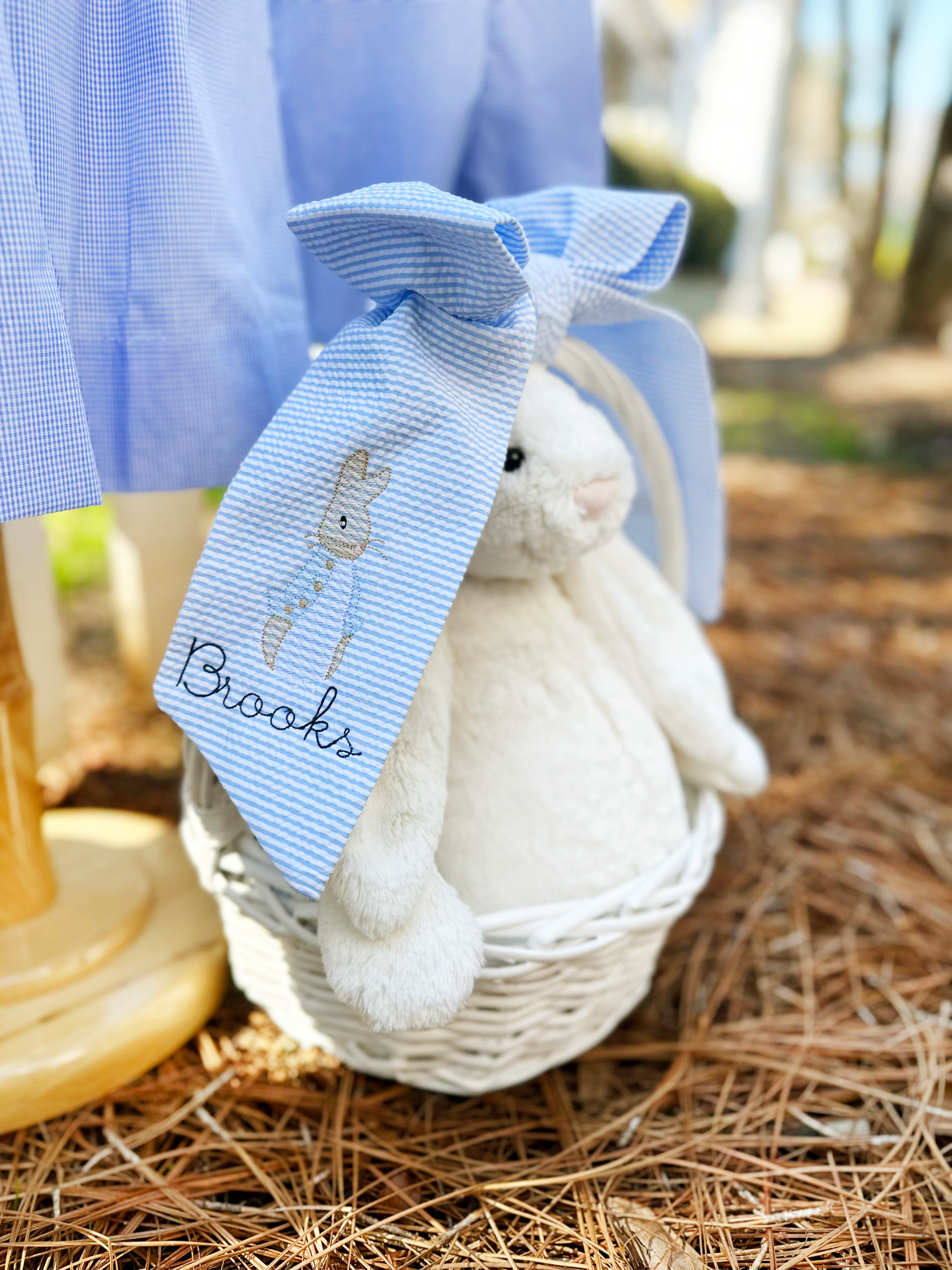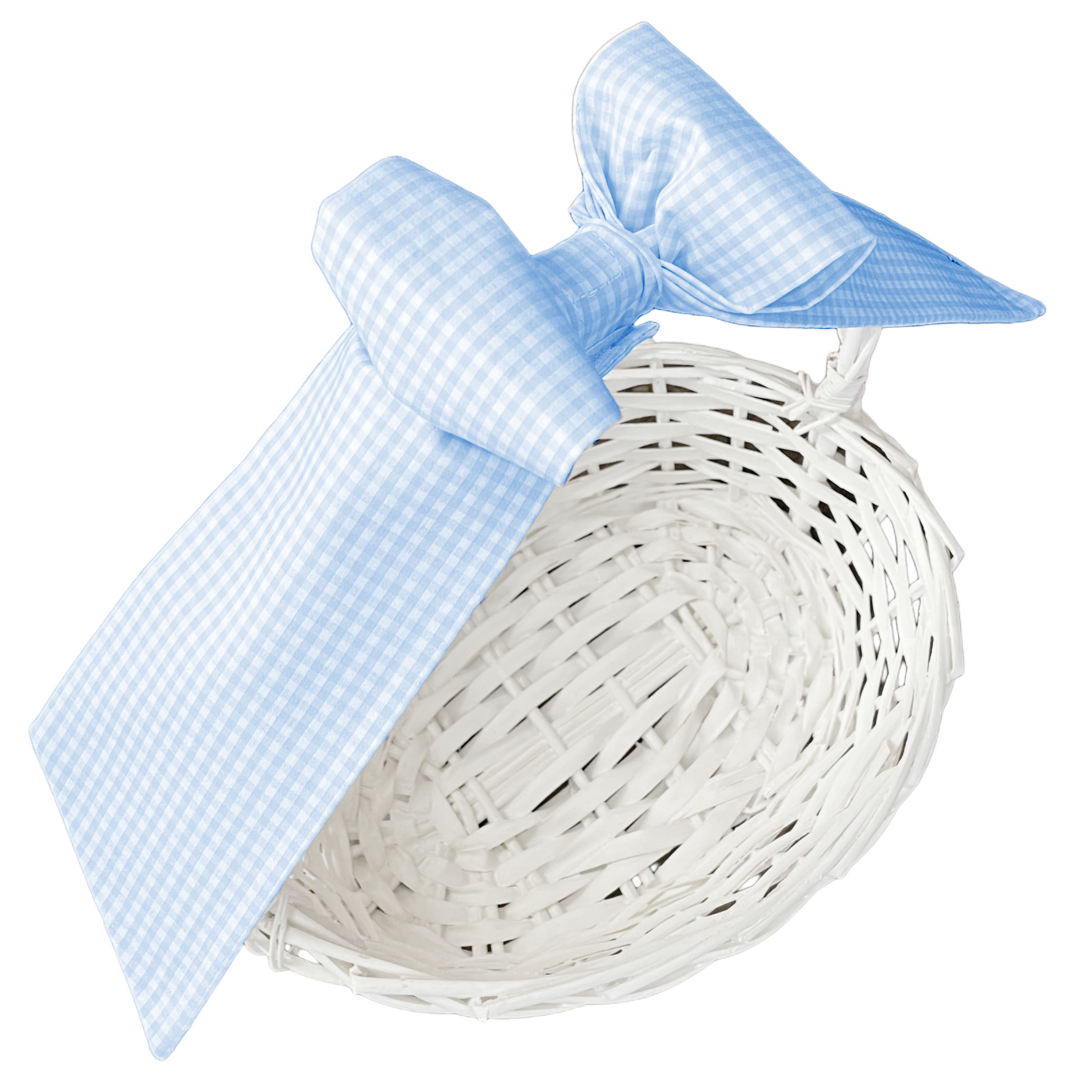 Whether adoring an Easter basket or an adorable baby shower gift basket, our monogram-able basket bows are adorable! To attach, simply use the attached velcro tabs to secure around your basket handle. Pair with our coordinating wicker baskets or a basket you have at home. ready for you to add Easter goodies, holiday presents, or baby shower gifts.