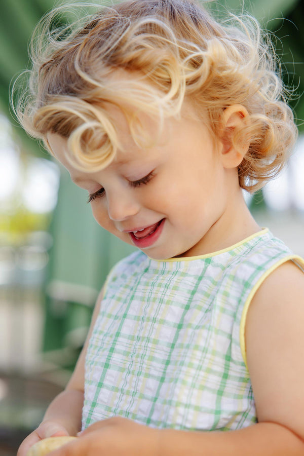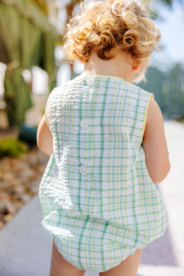 The Beaufort Bonnet Company Benjamin Bubble, Gibson Island Green & Lake Worth Yellow Sewanee Seersucker with Lake Worth Yellow