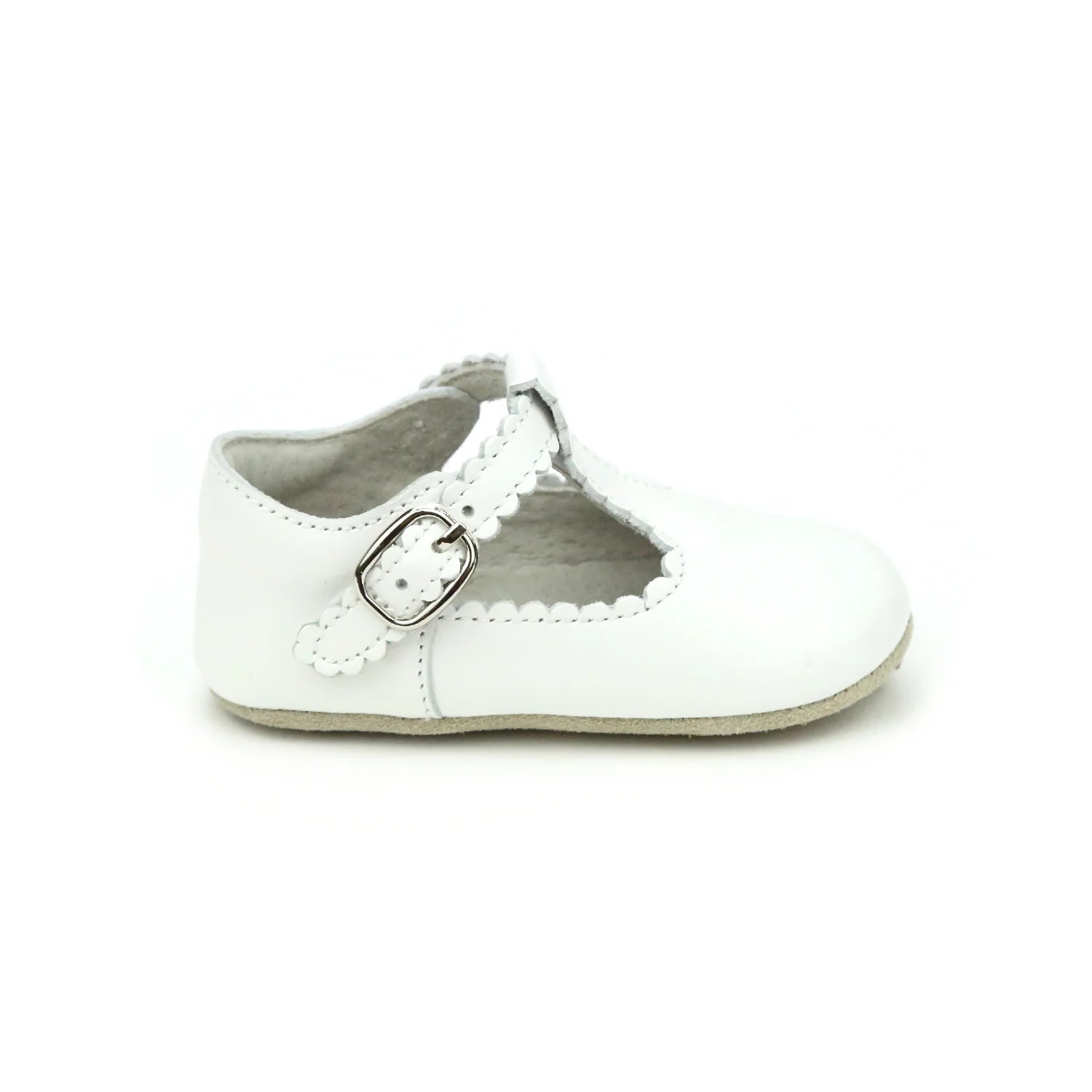 Lamour Angel Elodie Scalloped T-Strap Mary Jane Crib Shoe, White