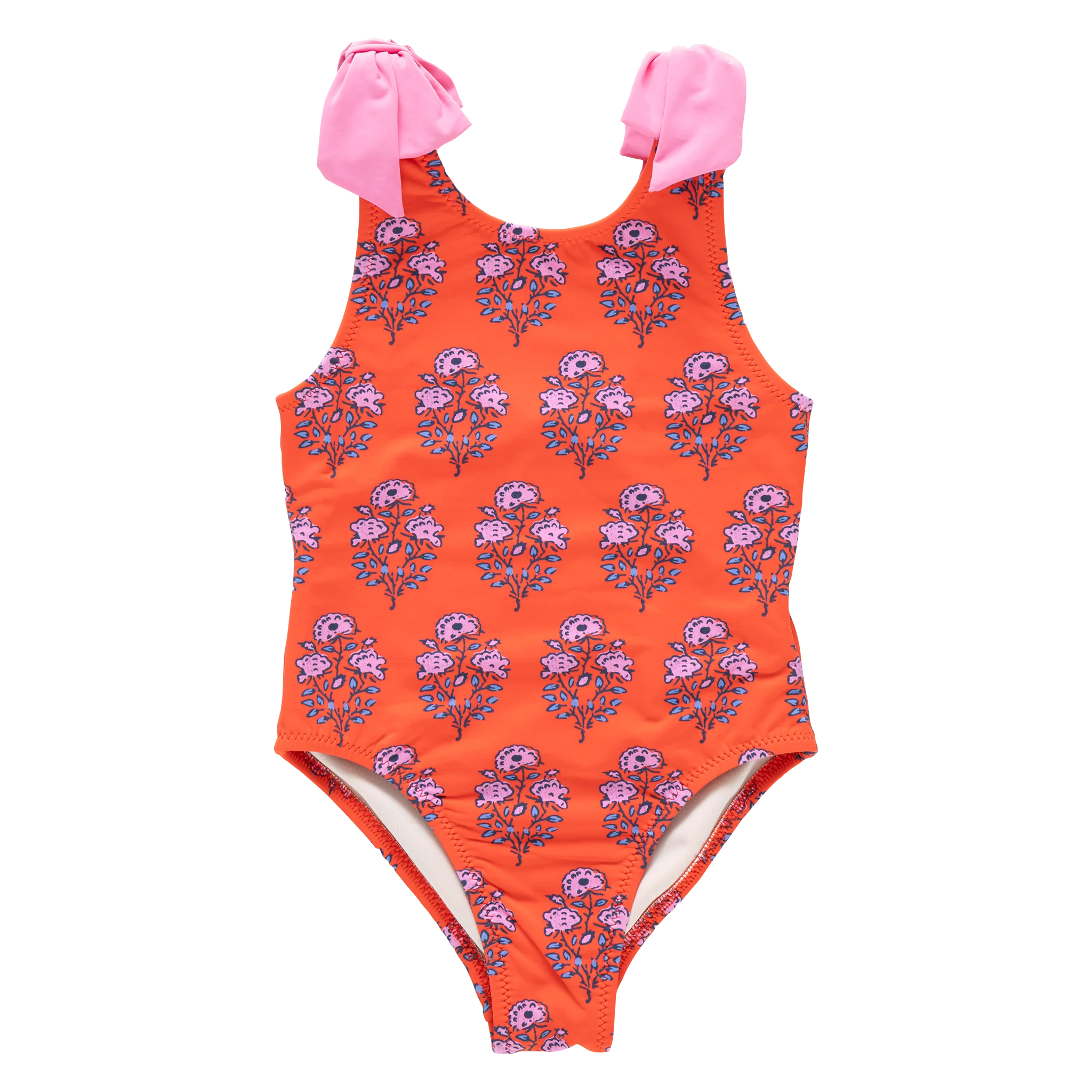 Bright and joyful, the Shelly Suit in Strawflower is full of personality. Fixed hot pink bows at the shoulders add playful dimension, while the scoop neckline keeps the silhouette classic and easy to wear. A standout one-piece designed for sunshine-filled days.