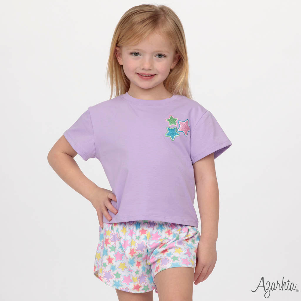 Glitter Stars Lavender Boxy Tee Azarhia Sale! from $35.00 /per Size YXS (5) YS (6/7) YM (8/9) Produc variants YXS (5) - Sold Out YS (6/7) YM (8/9) Qty. Add to Cart Couldn't load pickup availability Refresh Azarhia Glitter Stars Lavender Boxy Tee