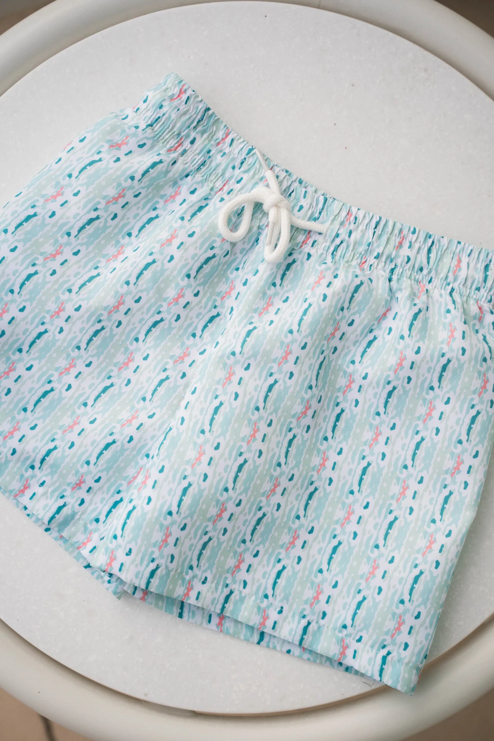 Saltwater Boys Co. Saint Simons Swim Trunk, White Ikat